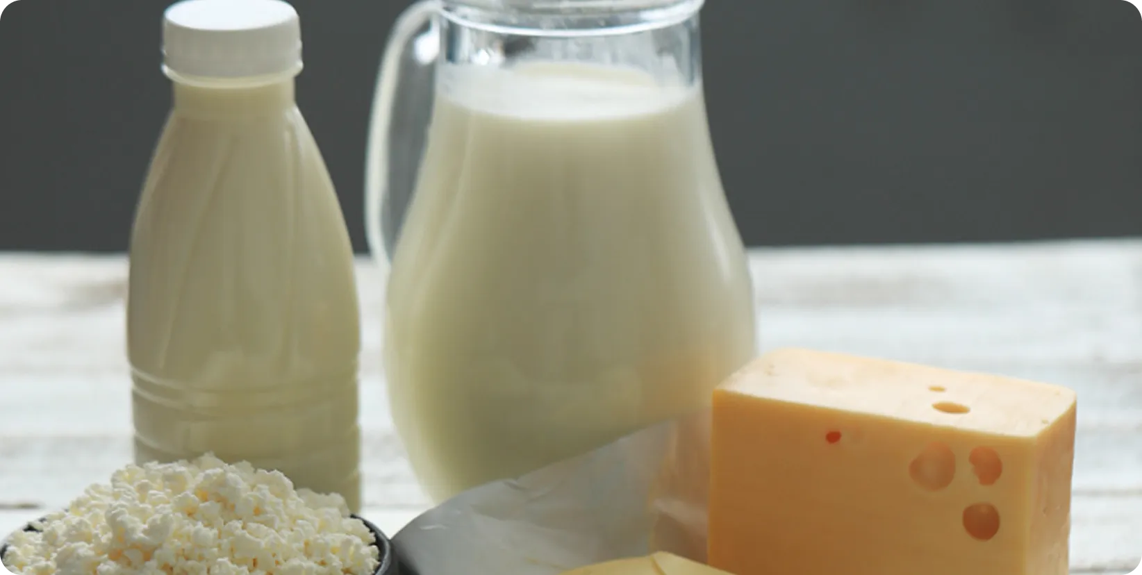 Milk, butter, cheese, and eggs — made with care from healthy animals.
